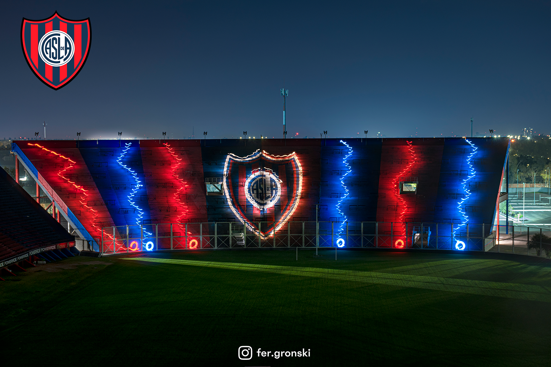 Light-painting photography production for Club Atlético San Lorenzo de Almagro inside stadium.